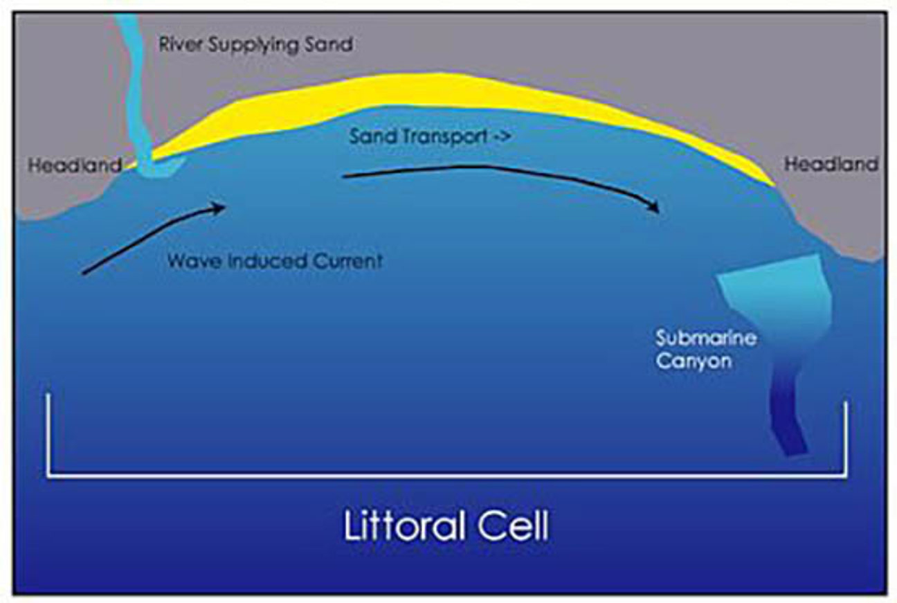 A drift cell is a geographically defined area of coast that has a distinct, self-contained cycle of sedimentation. Also known as a littoral cell, these cells require a source of beach material, a transport zone, and a location to deposit the sediment.