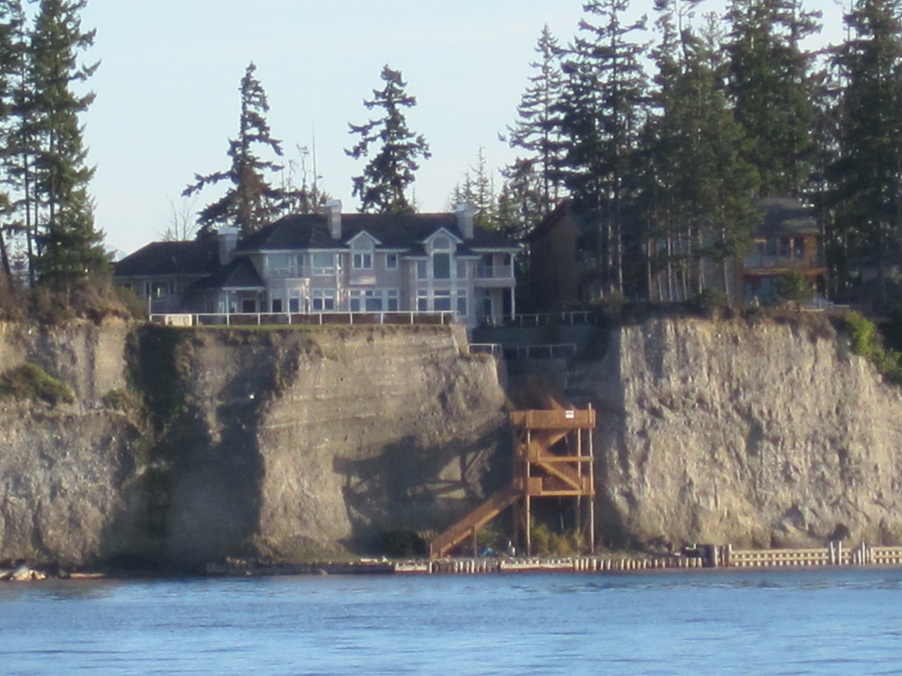 The natural geology of Puget Sound bluffs results in an estimated 2-10 cm per year rate of erosion. Cutting trees, compacting soils and planting grass can increase this erosion rate. Removal of vegetative material may appear to be an easy way to improve views and increase lawn area along the shoreline but it can have lasting impacts on your property.