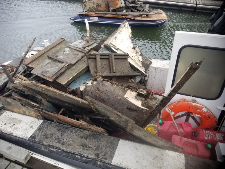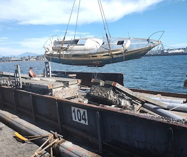 County Surface Water Management and the Snohomish MRC have worked with the Washington State Department of Natural Resources (DNR) since 2018 to support the removal of derelict boats from the Snohomish River estuary and Everett nearshore. This has included the removal of five derelict boats in 2018, three derelict boats in early 2019, and four derelict boats in 2020. Snohomish County Surface Water Management and the MRC were able to kickstart local derelict vessel removal when they obtained a $50,000 Puget Sound Partnership Near Term Action Grant. Snohomish County Surface Water Management has funded local derelict vessel removal after the original grant funding was used. Upon removal of each vessel, SWM coordinates with DNR to recoup some of the project costs through DNR’s Derelict Vessel Removal Program.