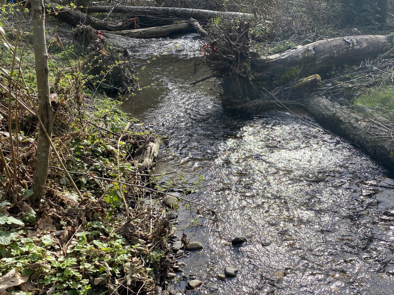 As anticipated, the site is changing over time. Most apparent is the extensive vegetation growth in the estuary transforming it from exposed soil following construction to covered with vegetation outside of the channels. The channels through the estuary continue to change as stream and tidal water carves new paths to the Salish Sea (Puget Sound). Continued change is expected in and along the stream and estuary as natural processes act on the restored habitats.