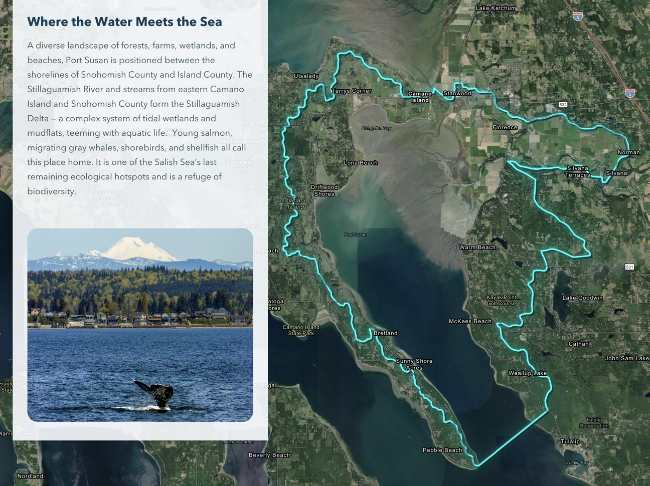 More information can be found in this story map: Ten Years of Progress: The Port Susan Marine Stewardship Area Conservation Action Plan. Additional information about the unique ecological and recreational opportunities in Port Susan can be found at the Port Susan Bay Ecosystem Wiki and The Nature Conservancy's Port Susan Bay Preserve webpage.
